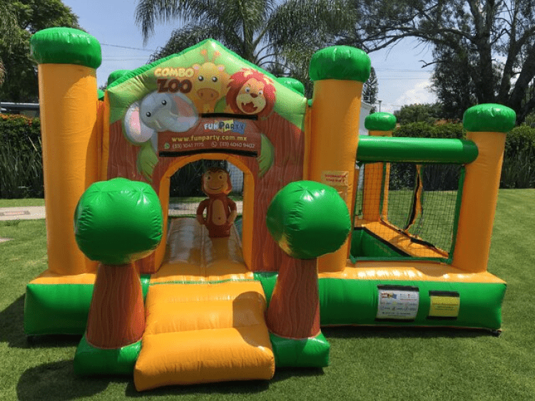 ✅ **Brincolín temático "Zoo"**: Diseño colorido con animales salvajes (jirafas, leones, monos y más).