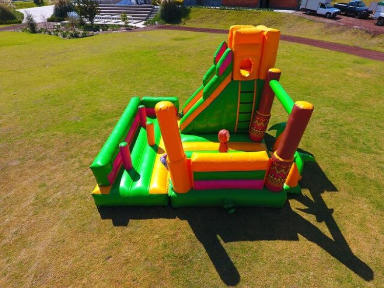 - OCCUPANCY: A maximum of 5-6 kids of equal size at one time for bounce houses, and 1 person at a time for slides is what most inflatable manufacturers recommend.